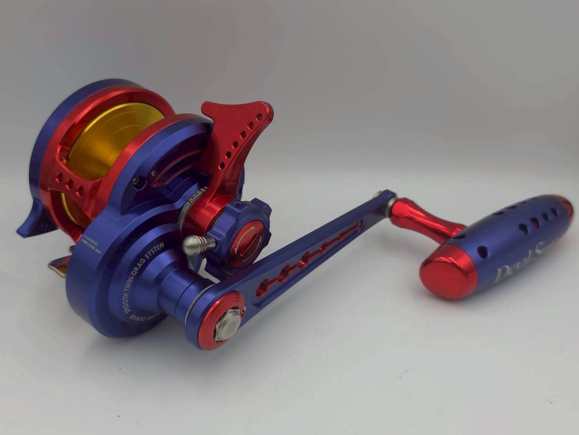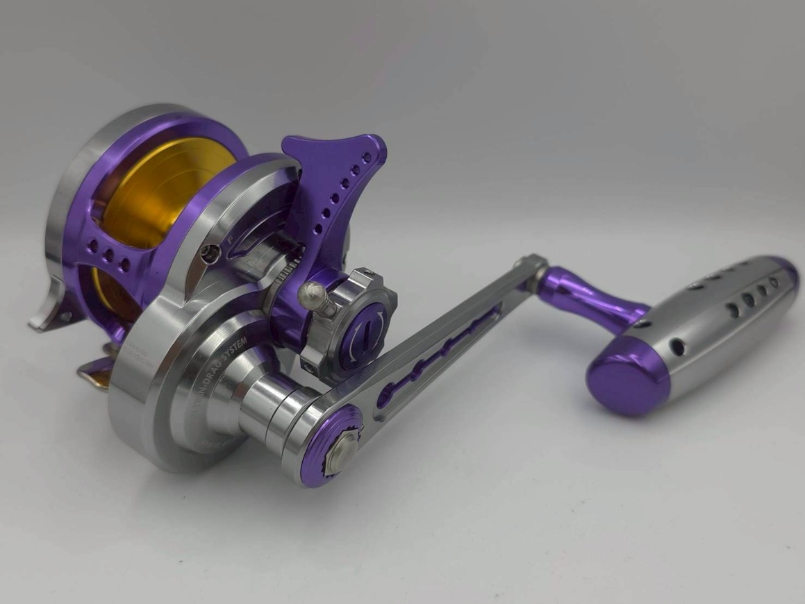 WIKI Jigging Devil Star reel with long arm + Titanium Turbo Knob #Titanium/Purple/Gold,#Dark blue/Red/Gold